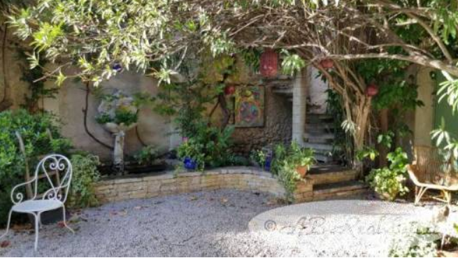 Fenced garden of 213m² without any overlooking neighbours, scope for a swimming pool, full of charm with a stone fountain on a piece of land of 517m², very peaceful, with a covered dining area, very easy to maintain.